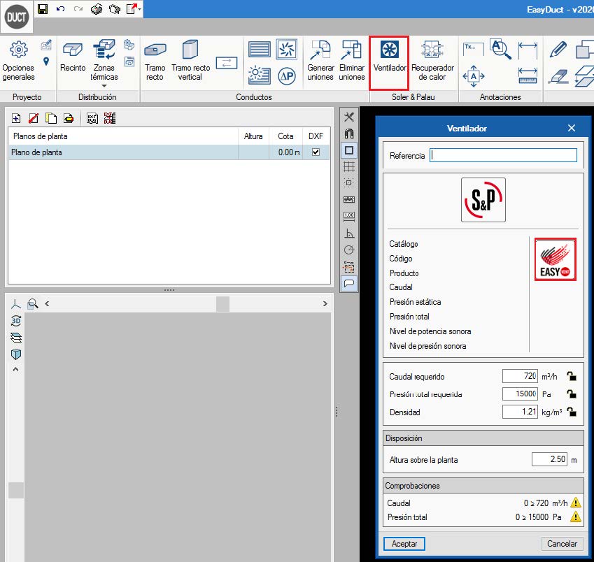 EasyDuct es un software desarrollado para realizar el diseño de instalaciones de ventilación. Está especialmente concebido para guiar al usuario en el dimensionamiento de conductos de ventilación, obtener la pérdida de carga de la instalación, y conectar con el portal de selección de S&P (EasyVent) para la obtención del producto más adecuado.